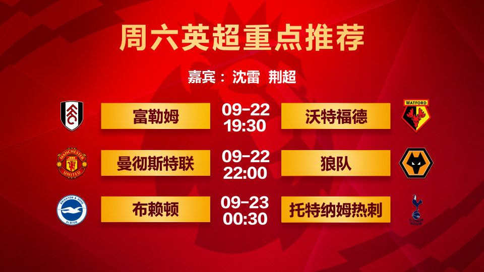 新赛季英超的前5轮不可谓不精彩,既有6-1的屠戮,已有曼联客场2-3倒输的冷门比赛。无论是强强对话还是中游交锋都是看点满满!JRS直播吧节目在英超开始后在每周末晚17:00回到大家身边,让我们看看这周都有哪些大神带来比赛的具体推荐吧!