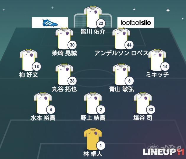 鹿岛鹿角本场轮休了在世俱杯中表现突出的柴琦岳和前锋金崎梦生,主力中后卫昌子源据说有伤在身,但强行出战。