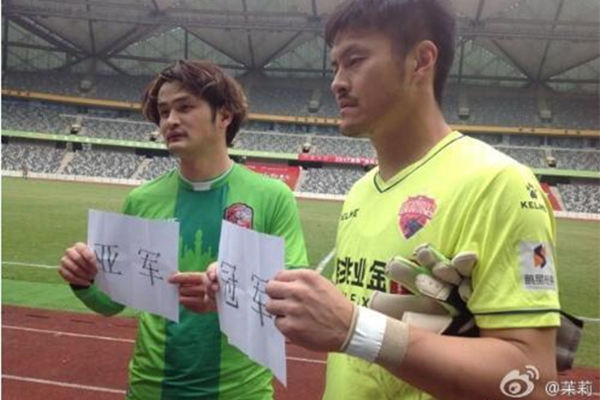 也不知道是不是为了“攒人品”,深足佳兆业派出了门将周亚军去参加抽签,“亚军”最终抽到了“冠军”,瞧瞧新疆天山雪豹队员哭笑不得的表情,颇有意思。