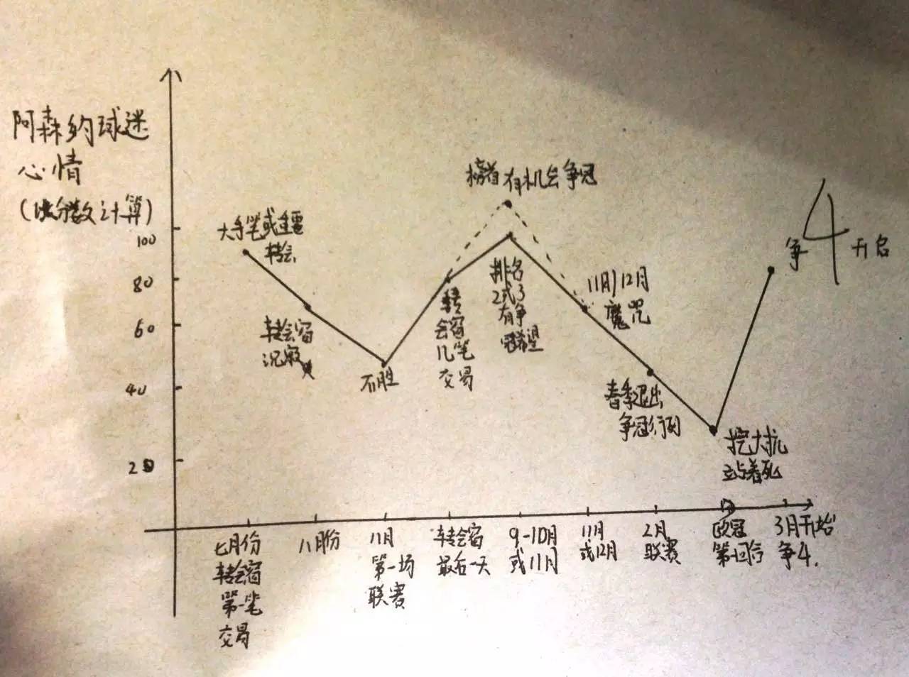 阿森纳球迷赛季心情曲线,向作图的兄弟致敬。