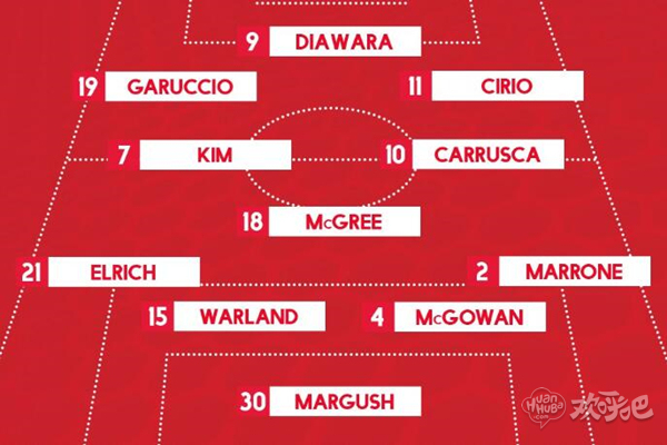 中场:麦克格里,金在成,卡鲁斯卡