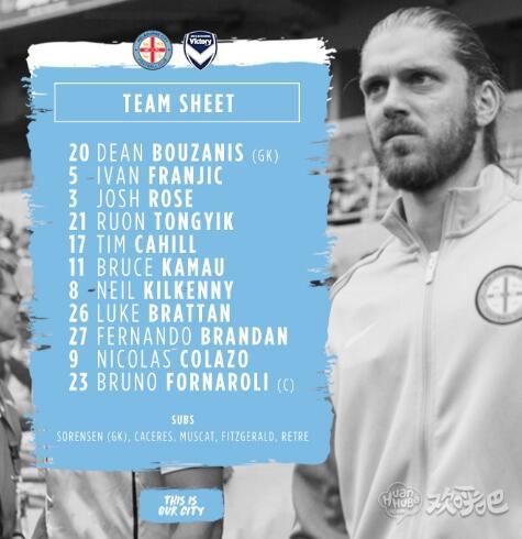 本场比赛球队在阵型上有所变化,从排除的首发名单来看,本场比赛墨尔本城将祭出352阵型。