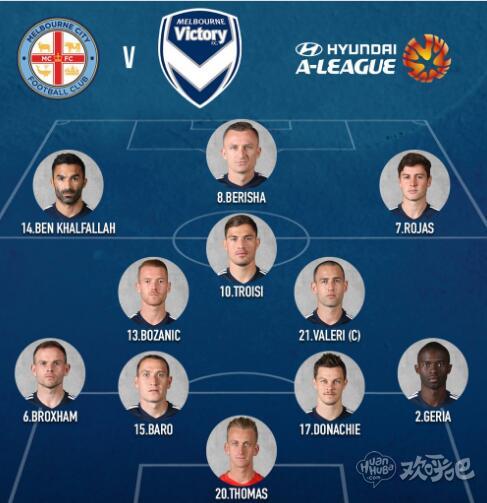 墨尔本胜利本场的首发阵容则延续了上轮击败西悉尼漫步者的阵容,并没有做出任何调整。