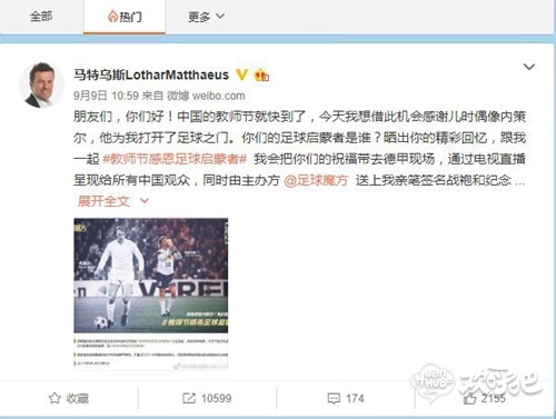 马特乌斯倡导教师节活动 德甲赛场中文感谢师恩