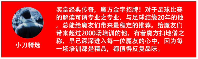 买就返100元!【小刀精选】奖堂经典传奇,魔方金字招牌!对于足球比赛的解读可谓专业之专业,与足球结缘20年的他,总能给魔友们带来最稳定的推荐。给魔友们带来超过2000场培训的他,不愧为魔方扫地僧,早已深深烙印在每一位魔友的心中,毕竟每一场培训都是精品,值得您反复品味。