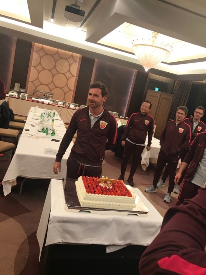 上海上港全队在日本为主帅博阿斯庆祝40岁生日