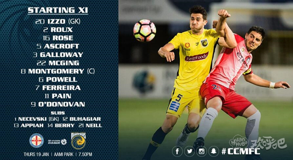 北京时间1月19日下午16点50分,墨尔本城将坐镇主场迎战中央海岸水手,赛前两队公布了球队本场比赛的首发阵容。