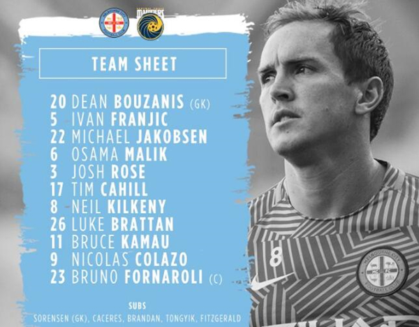 人员方面,墨尔本城本场比赛基尔肯尼首发登场,上场比赛首发出场的通伊克本场比赛暂时在替补席待命,其他位置与上轮比赛首发完全相同。