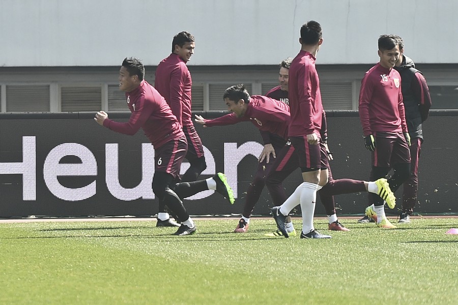 北京时间3月3日晚19:35,为备战中超新赛季的首场比赛,上海上港进行了赛前训练。此前,虽然上港在亚冠的比赛中表现出了良好的比赛状态,但主教练博阿斯在训练场上依旧十分认真,严阵以待。