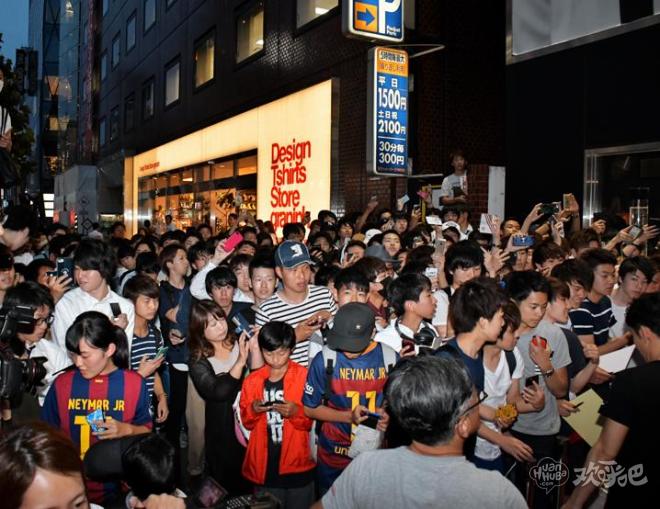 同时众多日本球迷聚集在商店门口,一睹内马尔真容。